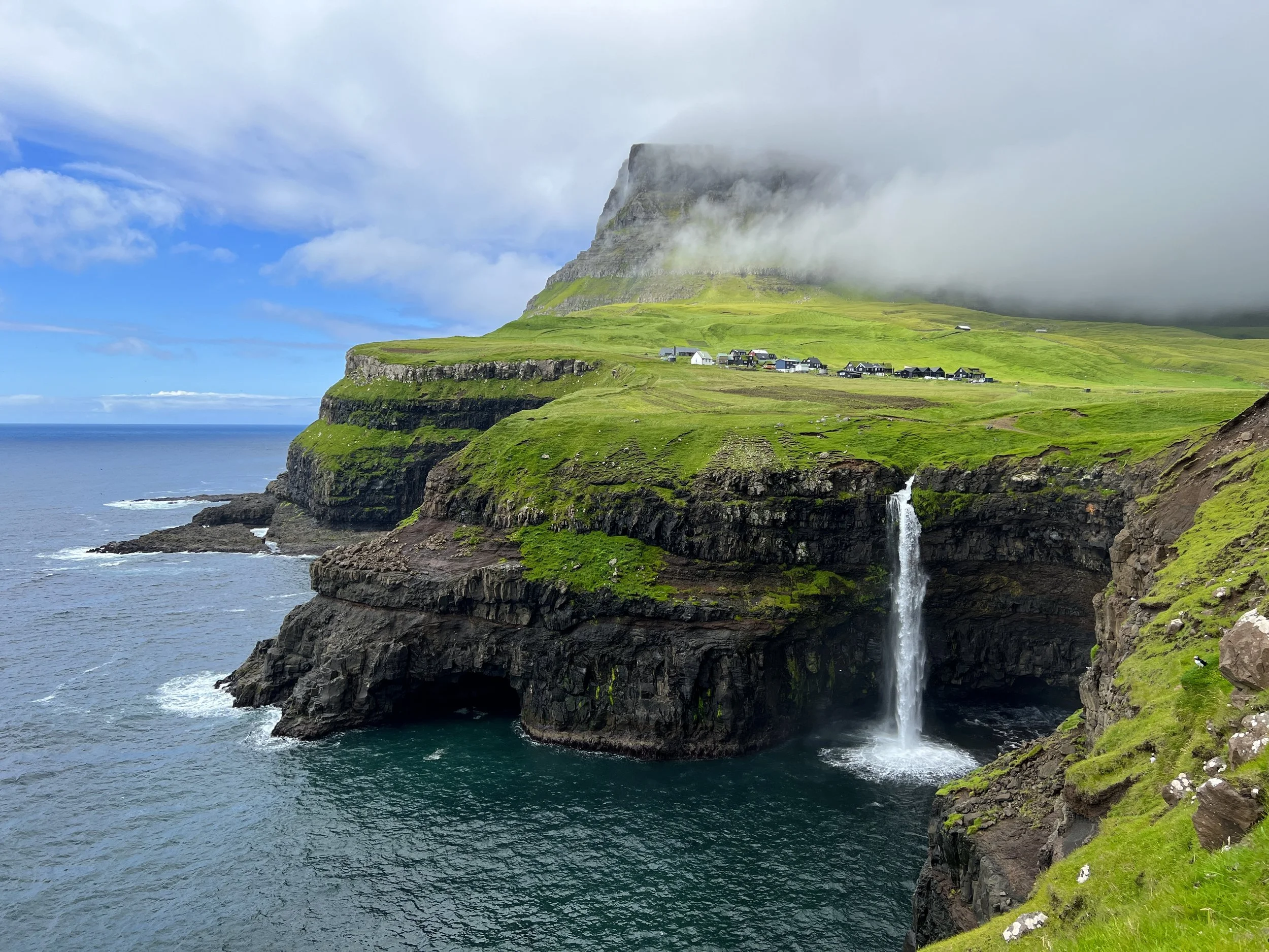 To wrap up the tour, we saw the best view I’ve ever taken in: Gásadalur. The tip is to not look to the right as you walk down the path to make the view even more dramatic when you first see it.